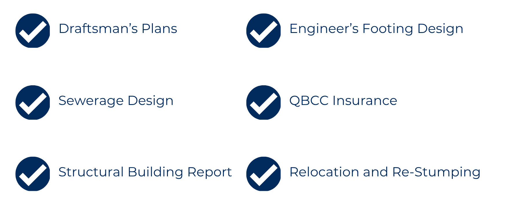 Bennett's price includes delivery and re-stumping within 100km of Goombungee. Engineers footing design up to 900mm high, engineer’s building report and draftsman plans are also included. We can also assist with the lodgement of council applications, however payment of council fees, refundable bond and private certifier is the responsibility of the client.
